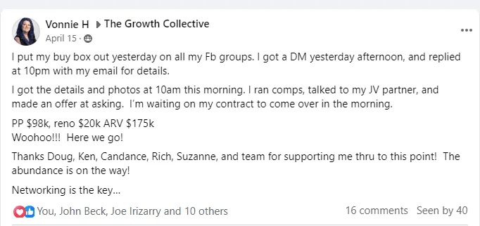 We are so thankful to be a part of The Growth Collective community! Douglas is a wealth of knowledge, experience, and delivers his expertise in a way that is very easy to understand, especially being fairly new investors. We get the personal attention that we need to be successful.